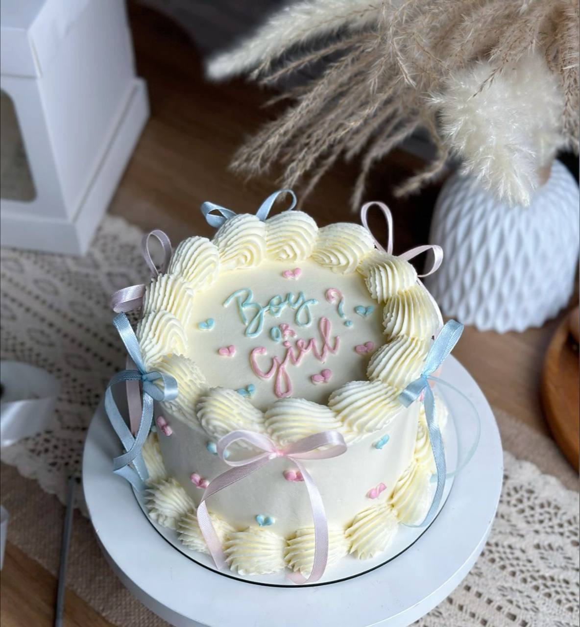 Торт, украшенный бантами, станет отличным способом узнать пол будущего малыша.
